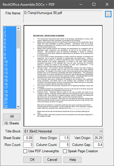 Assembles multiple sheets from a multipage document that has been printed to a PDF file format.